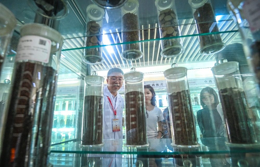▲10月8日,重庆中医药学院中药资源及产品展示中心,家长和新生们正在了解中药标本。记者 郑宇 摄