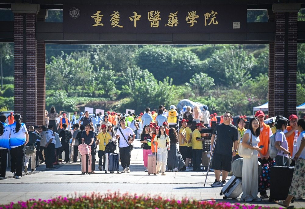 ▲10月8日,重庆中医药学院,众多同学和家长步入美丽的校园。记者 郑宇 摄