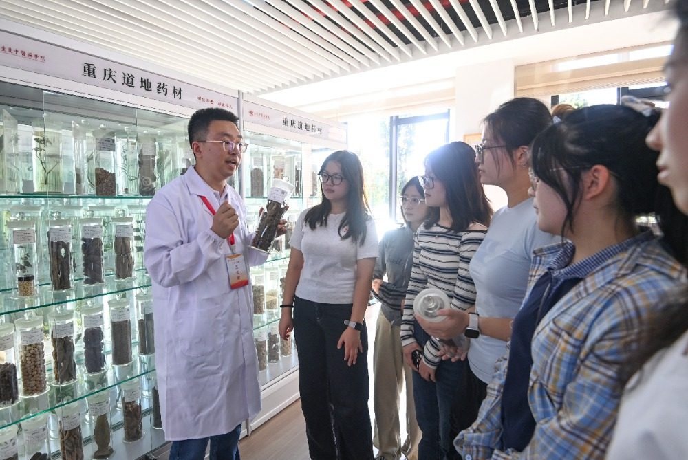 ▲2025年10月8日,重庆中医药学院中药资源及产品展示中心,老师正向新生介绍中药材标本以及对专业进行详细讲解。记者 郑宇 摄