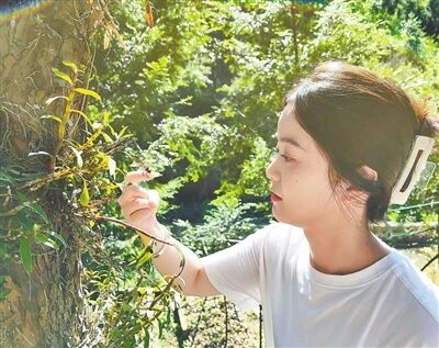 缘溪而行,谢满月时而钻进红豆杉林中,扒开沙土,看看含水情况,时而盯着树干,打量着细如发丝的铁皮石斛幼苗。秋日的阳光穿过枝叶的缝隙,一只蜻蜓大方地落在她的手指上,谢满月满脸惊喜:“小蜻蜓,你好呀,喜欢这里吗?”