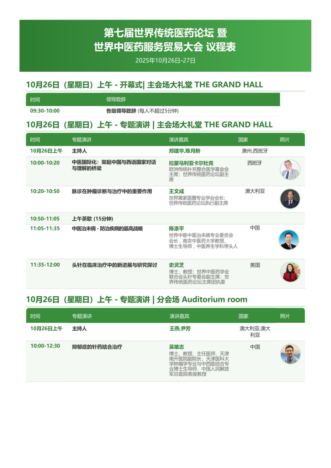 第七届世界传统医药论坛 暨世界中医药服务贸易大会 议程表