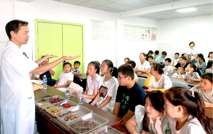 长沙市芙蓉区卫健局组织医务人员教学生辨识中药饮片。