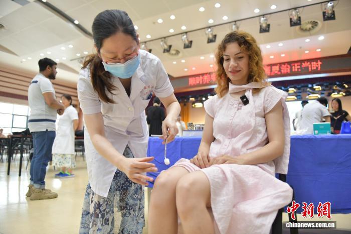 6月11日,安徽合肥,外国留学生体验针灸。记者储玮玮 摄