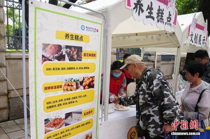 图为市民品尝养生糕点。中新社记者 刘冉阳 摄