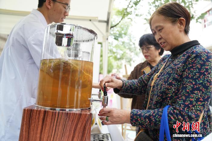 图为市民品尝中药茶饮。中新社记者 刘冉阳 摄