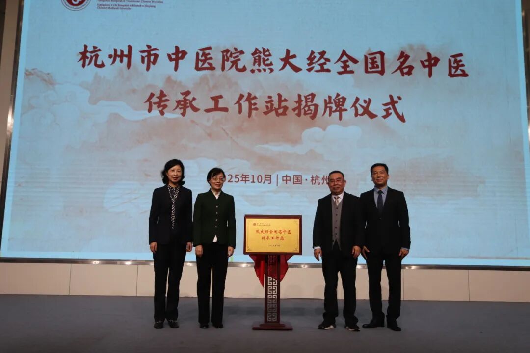 承浙江省卫健委、杭州市卫健委之鼎助,蒙院领导党委之重视,特设“全国名中医熊⼤经传承⼯作室”,悬牌以彰其道,⽴室以传其业。
