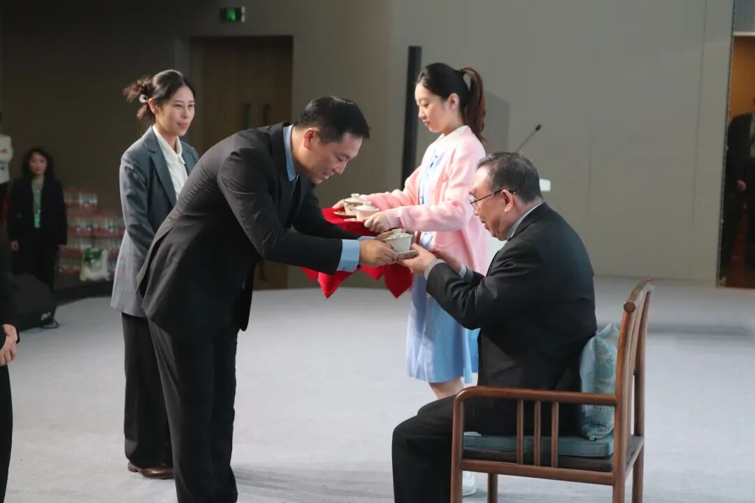 揭牌仪式后,医院举行了庄重的拜师典礼。杭州市中医院耳鼻喉科陈志凌等三位弟子依古制行拜师礼、敬茶献花,表达对师道的尊崇与传承的决心。熊大经精神矍铄,题写“名医大德”等多幅墨宝赠予并勉励后学,他希望弟子们“左手执精湛医术驱散病痛阴霾,右手握高尚医德传递仁心温暖”。