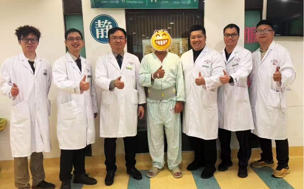 术后第2天出院之际,Patrick先生动情地说:“I really appreciate the service I received from your team. Both doctors and nurses in China have left a very good impression on me, Thank you!”(很感谢你们团队给我的医疗服务,中国不管是医生还是护士给我印象都非常好,感谢你们!)并要求与为他治疗的医护人员合影以庆祝康复出院。