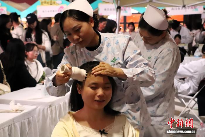 正在体验“艾灸头疗”的市民。 熊锦阳 摄