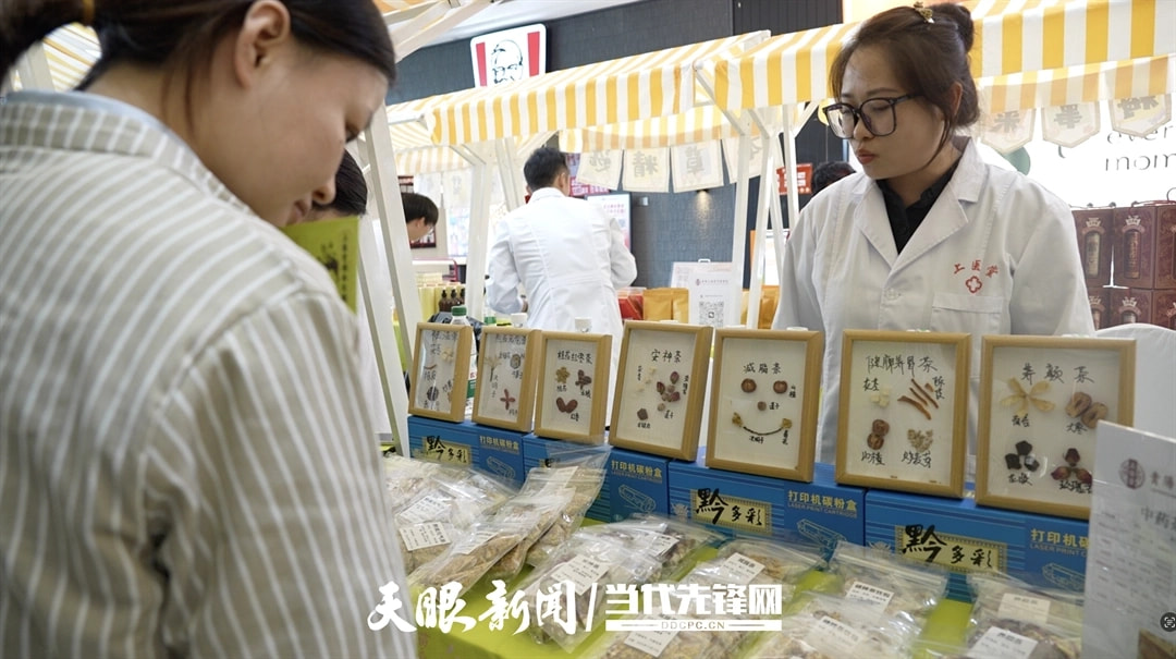 活动现场,各类国潮风格的中医药小商品琳琅满目,游客们纷纷驻足体验、拍照打卡。贵阳上医堂中医医院医师王琴介绍,此次集市旨在通过贴近年轻人审美的形式,让中医药文化更直观、更亲切地走进大众生活。“我们将中医药养生文化与国潮风格相结合,使中医药更能被大众,特别是年轻群体所接受,让大家知道中医药其实离我们的生活很近。”