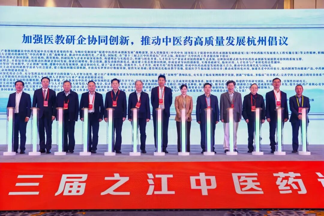“之江中医药论坛”是浙江省中医药学会推动中医药发展的品牌性学术论坛,近年来围绕国家政策和行业问题开设专题论坛,取得了良好反响。浙江省中医药学会会长范永升介绍,本届论坛发布的《“加强医教研企协同创新,推动中医药高质量发展”杭州倡议》是继《中西医学协同发展杭州共识》《中医药数智化发展杭州倡议书》后,浙江省中医药学会牵头发布的又一重要倡议。倡议以“传承精华、守正创新”为原则,旨在推动医疗机构、教育机构、科研院所与企业开展深度协作,通过建立常态化协同机制,构建理论与实践结合、科研与转化并重、人才培养与产业需求对接的创新生态系统。倡议明确各方职责:医疗机构开放真实世界诊疗数据资源,加速名老中医经验方、院内制剂等向健康产品、中药新药转化;教育机构深化校企合作,建立以产业和临床需求为导向的科研选题机制,培育复合型人才;科研院所聚焦临床与产业需求,搭建共享平台、完善成果转化服务体系、开展原创性攻关;企业加大研发投入,建立校企、院企联合实验室,构建全产业链创新联合体,提升核心竞争力;学会搭建交流平台、完善评价与标准体系。
