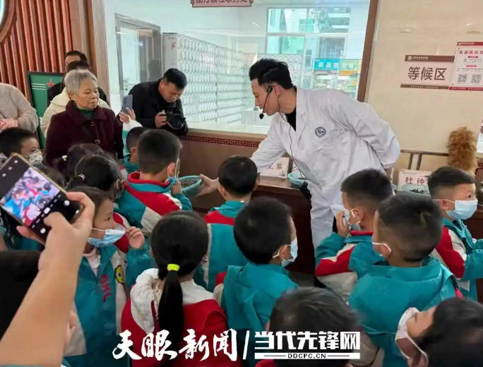 讲座结束后,孩子们在党员志愿者的带领下,化身“小小本草探索家”,走进县民族中医院开启观摩之旅。在土家中草药标本展厅前,孩子们认真聆听志愿者讲解杜仲、天麻、金银花等常见药材的名称、形态与功效,近距离观察形态各异的中草药标本,感悟大自然赋予的药用价值。