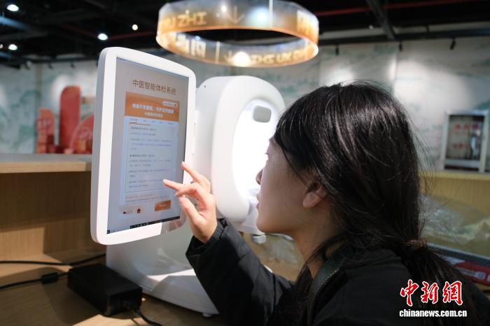 近日,游客正在体验中医智能脉诊仪。曹丹 摄
