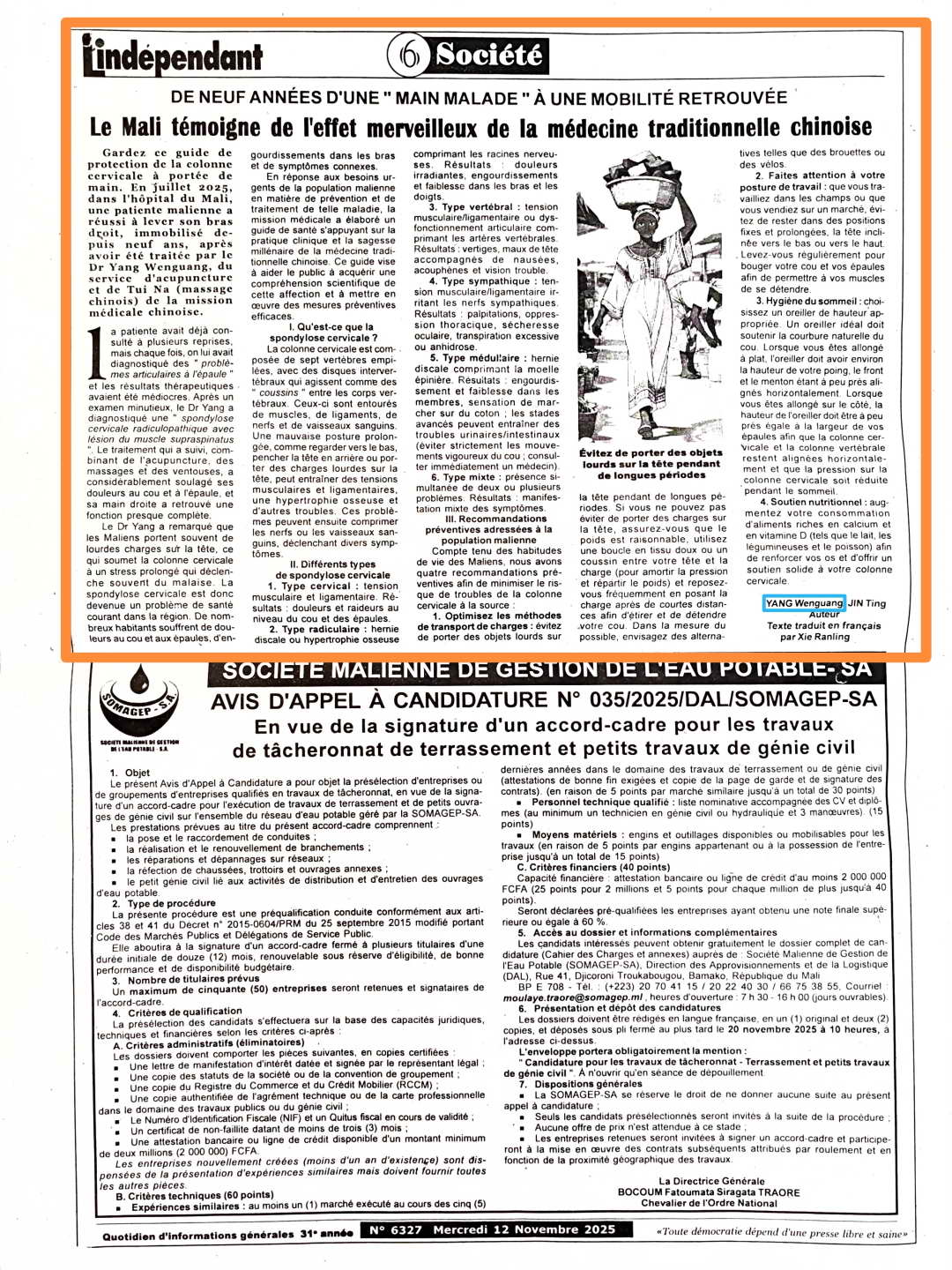 另一个“奇迹”则发生在一名29岁的当地女性患者身上。她右手九年无法自如抬起,曾被多方误诊为“肩关节病变”。杨文广经过详细体格检查结合当地生活特点,精准诊断为“神经根型颈椎病合并冈上肌损伤”。首次治疗结束后,患者症状明显改善,僵硬九年的右手便轻松抬起。这一案例被当地患者口口相传,让“中国中医”的口碑在马里民众心中深深扎根。