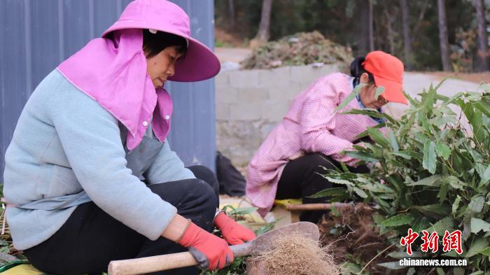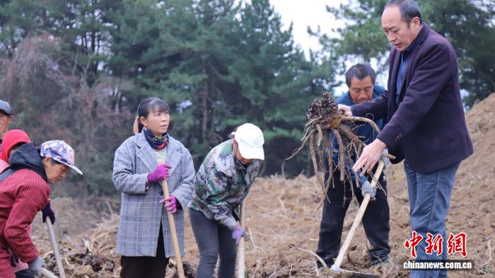 2025年12月,陕西省汉中市镇巴县种植户正在采收药材。 郝洋 摄