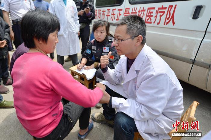 资料图:郭宏涛带领学生做医疗志愿服务。 受访者供图