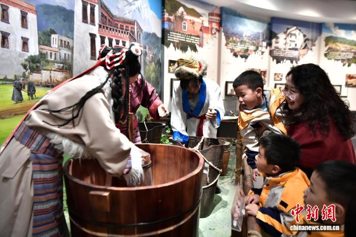 12月16日,河北安国中医药文化博物馆,小朋友正在馆内参观。中新社记者 翟羽佳 摄