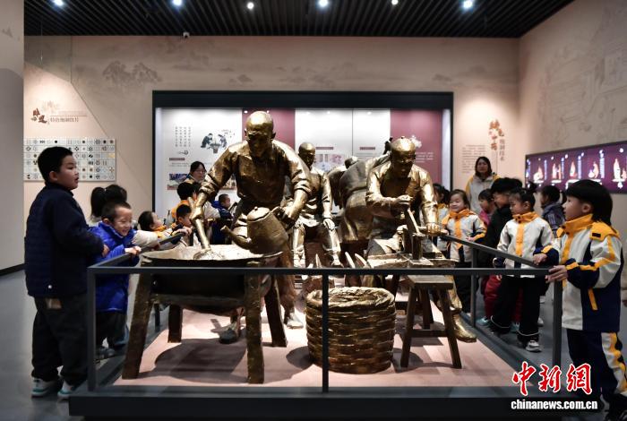 12月16日,河北安国中医药文化博物馆,中草药炮制流程吸引小朋友驻足观赏。中新社记者 翟羽佳 摄
