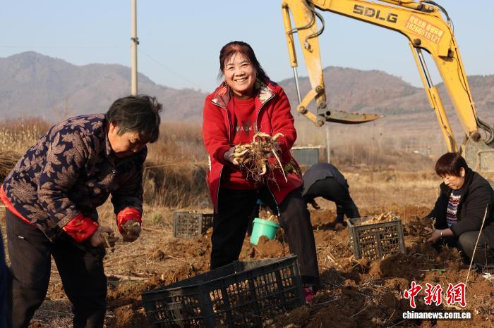 11月26日,山东省泰安市岱岳区天平街道耿庄村,村民们在田间忙碌采收泰山黄精。周艺伟 摄