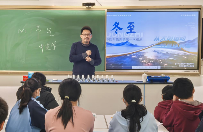 课堂上,北京四中房山分校教师杨斌虎为学生们介绍了课程的目的与意义,鼓励学生们通过这一课程培养科学探究精神和创新实践能力,真正成为既懂传统又通现代、既有文化底蕴又有科技素养的新时代青少年,为传承和发展中医药文化贡献自己的青春力量。