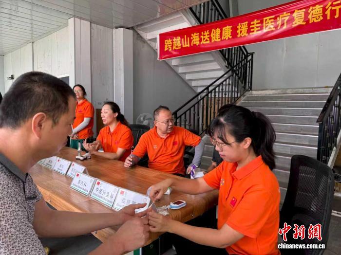 医疗队王涵主任给员工进行血糖检测。李妍雨 摄