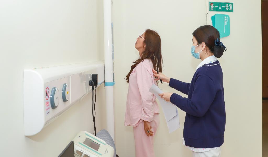 一名印尼游客(左)在海南博鳌乐城国际医疗旅游先行区接受健康体检(2024年12月25日摄)。新华社发