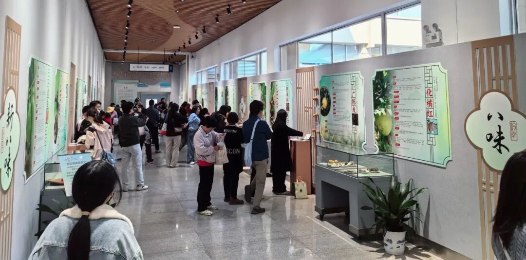 第一区域为展览区。通过详实的图文展板、珍贵的药材标本、清晰的道地产区地图以及历史文献摘录,深入介绍了每味药材的科属来源、药用部位、性味归经、功能主治、本草考证、道地产区及特色文化,系统展示了“岭南八味”与“岭南新八味”的深厚底蕴。例如,观众可以了解到“南方人参”化橘红自南朝宋始用的悠久历史,“广东三宝” 之首、有着“百年陈皮胜黄金”民间美誉的新会陈皮所承载的非遗炮制技艺,以及被誉为“南芪”的五指毛桃在客家药膳文化中的重要地位。展览不仅呈现了药材的药用价值,更凸显了其作为岭南地理文化符号的独特意义。