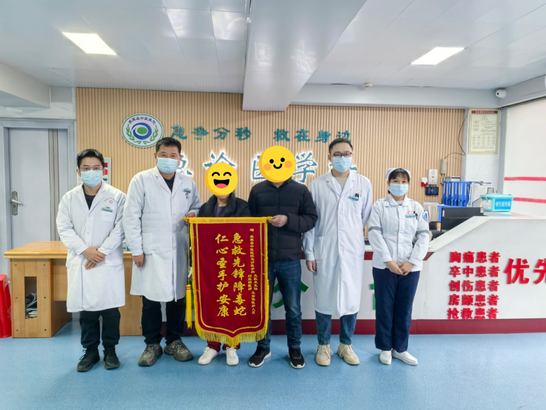 患者抵达急诊科后,蛇伤救治预案立即启动。医护团队再次引导患者确认毒蛇种类后,迅速展开救治:局部冲洗消毒、负压吸引排毒、静脉滴注抗蛇毒血清、破伤风预防注射,并严密监测生命体征及器官功能。整个过程紧张有序,确保了救治流程的规范与高效。