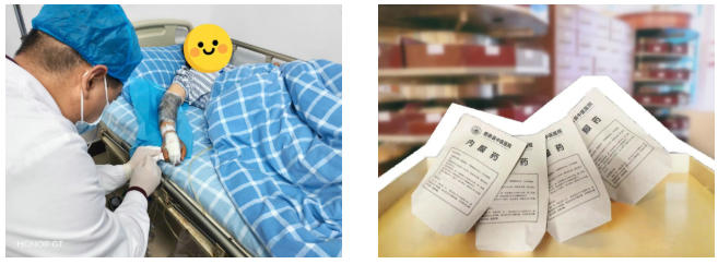 经过急诊科紧急处理后,患者收住医院综合科,在常规西医治疗基础上,充分发挥中医药在蛇伤救治中的作用,中药协定方内服外敷以及针灸疗法,有效缓解了局部肿痛与全身中毒症状。