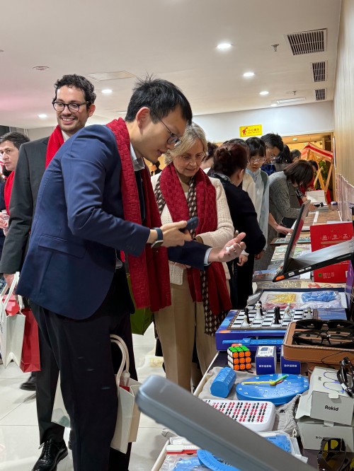 活动聚焦盲人群体融合发展,中外嘉宾们与盲人医师、残疾人手工艺品从业者等残疾人代表现场互动,体验传统中医按摩推拿、针灸等护理疗法,制作中药香牌、中草药书签、药膳饮品以及富有中国元素的对联、福字、漆扇和蜡染围巾等传统新年民俗装饰品,近距离感受中国传统文化独特魅力。嘉宾们参观了残疾人手工艺品展览,体验盲文版无障碍中国·世界地图、《触摸故宫珍宝》和《触摸<清明上河图>》触觉画册,试用无障碍智慧阅读器、助视器、AI智能眼镜、电子导盲犬及视障无障碍电竞游戏等惠残科技辅助器具,深入了解我国残疾人在无障碍融合社会、共享发展成果的幸福生活。北京按摩医院和中国残疾人艺术团的视障朋友们还带来了精彩的才艺表演,中国残疾人艺术团演员、“全国最美家庭”称号获得者俞彧携家人演唱《我的祖国》,将现场气氛推向高潮。