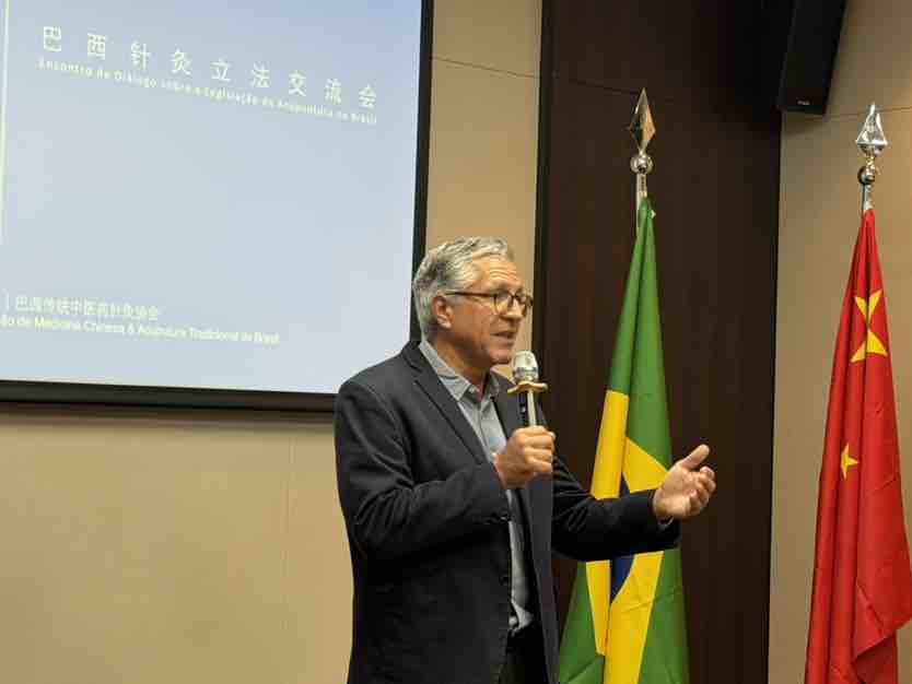 交流会由巴西华人协会秘书长蒋幼扬主持。他首先介绍了与会主要嘉宾,并阐明此次会议的背景与意义:“1月13日,巴西联邦政府正式通过了针灸全面合法化的法案。今天我们特别举办这场交流会,共同庆祝这一对于中医药在巴西发展具有里程碑意义的重要时刻。”
