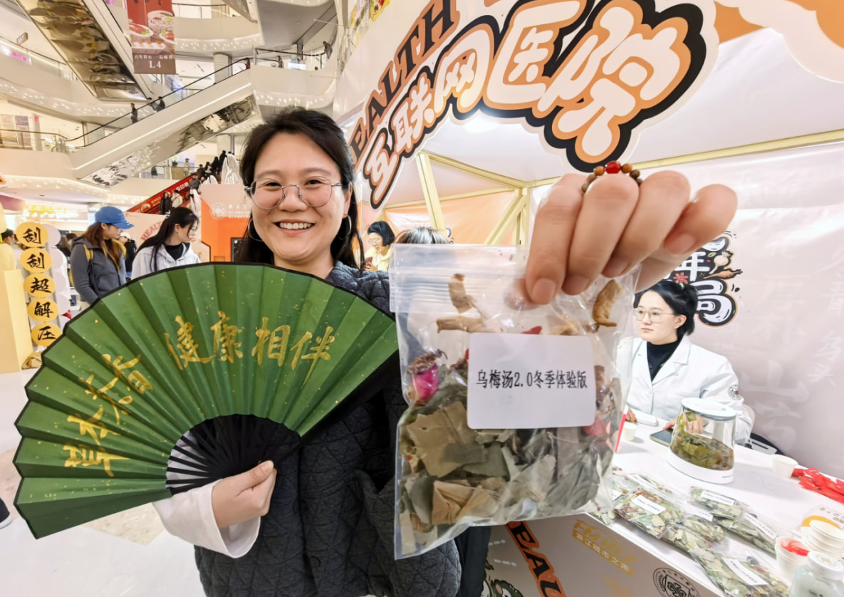 前不久,杭州金沙印象城一场名为“脆皮青年养生局”的中医药冬令养生专场上,人头攒动。20余位各科中医专家现场义诊,中药辨识、膏方咨询、精油体验、火龙罐、八段锦教学等互动项目前都排起了长队。专程从滨江赶来的陈女士体验完火龙罐,脖颈的僵硬感大为缓解;25岁的小吴跟着专家学完一套八段锦,直呼神清气爽;而24岁的程序员小赵,在把脉问诊后,对医生推荐的“新玩意”产生了浓厚兴趣——那便是首次公开亮相的“乌梅汤2.0冬季新品系列”。