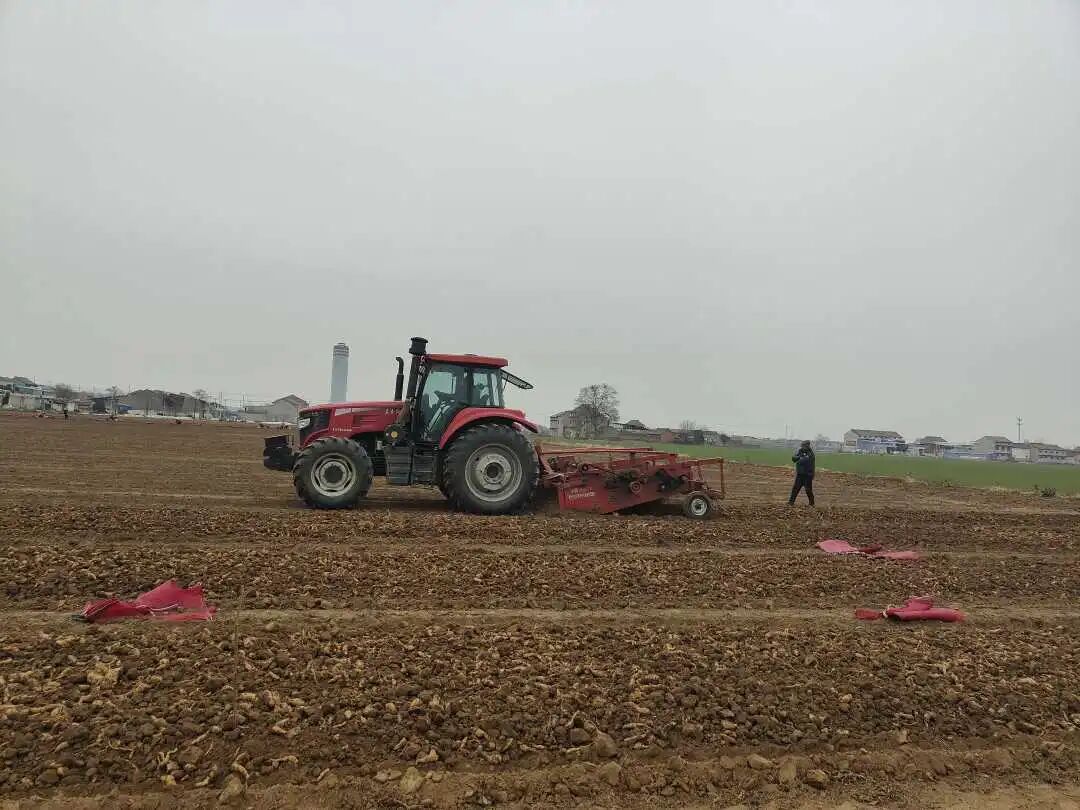 西虢镇西虢村怀地黄种植地里,刨收机正在作业。刘小雪摄