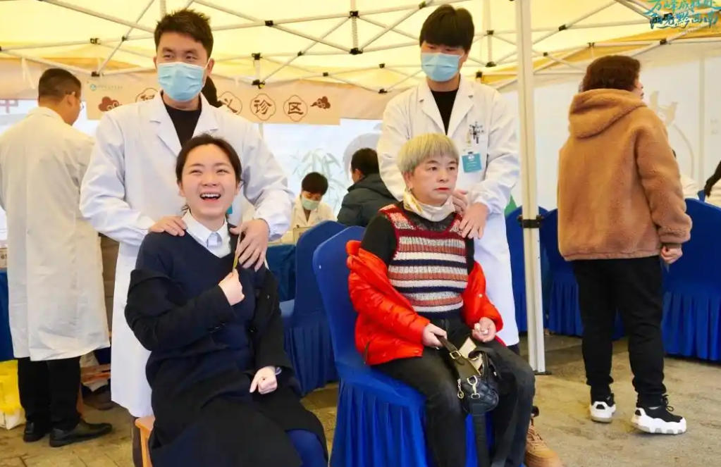 不远处的中医特色疗法体验区同样人气不减。针刺、推拿、铜砭刮痧、中药热敷、耳穴压豆等项目依次展开,医师一边操作一边讲解,让不少市民直观感受到中医外治法的效果。市民李兴琴在测量血压后,根据医师建议贴上了耳穴贴,“感觉挺好,也学到了不少养生方法。”她说,现场书写的春联和福字也让自己收获了一份别样的节气祝福。