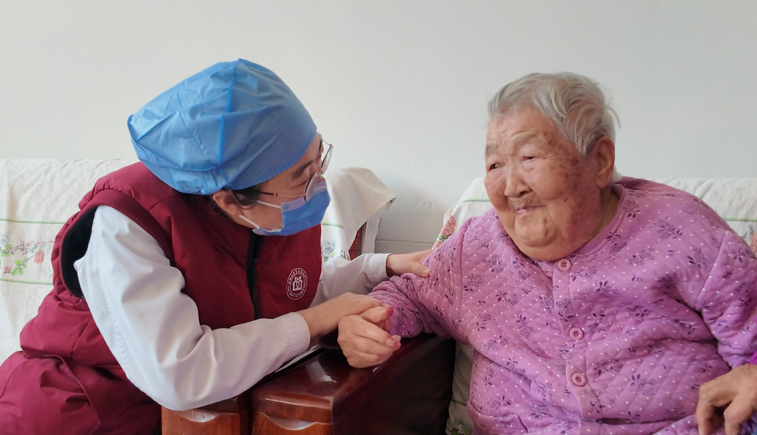 付奶奶如今已是耄耋之年,脑梗后遗症致使其无法起身站立。两年来,付奶奶已是社区卫生服务中心重点照顾的患者之一。“奶奶,新年好,今日感觉如何?是否有身体不适之处。”付奶奶激动地说:“谢谢你们。”儿媳在一旁轻轻拍打她的后背,满是心疼地说:“她现在的病情已经有了很大的好转,目前麻烦的是一激动就会呛咳,夜里还频繁起夜,腿脚也不方便,每次都要抱着她起身。”