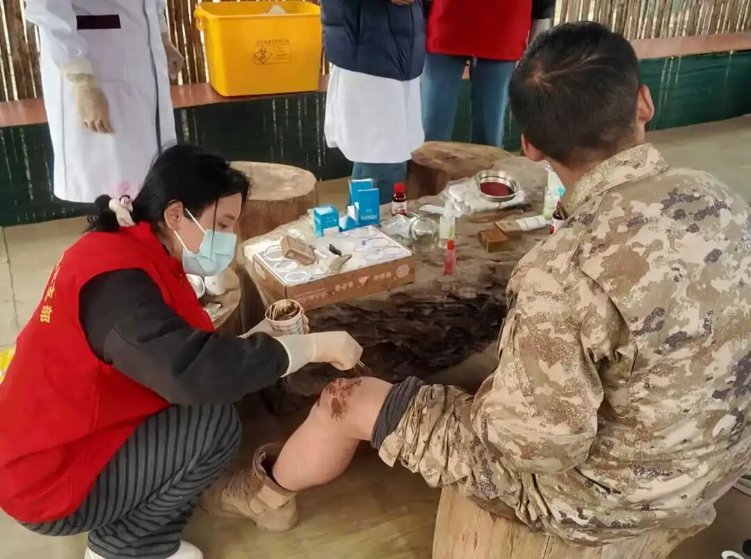 边防官兵体验藏医涂擦疗法