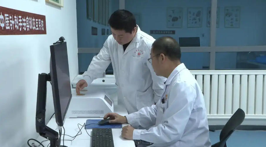 医护人员正在演示中医针刺手法实训交互系统 (约热古丽 摄)