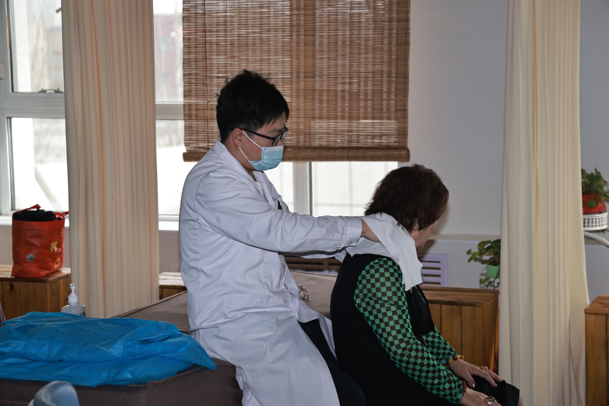中医进行肩颈按摩 (赛永杰 摄)