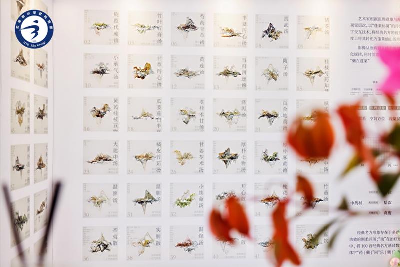 展览核心区域的“本草群岛”令人耳目一新。数十个3D打印模块悬浮空中,组成一座座“数字药岛”——升浮药性化作向上伸展的尖塔形态,代表解表、升阳的功效;沉降药性凝成沉稳厚重的立方体,象征清热、泻下之功;部分模块通过旋转与错位,表达药性在人体内的升降浮沉运动轨迹。