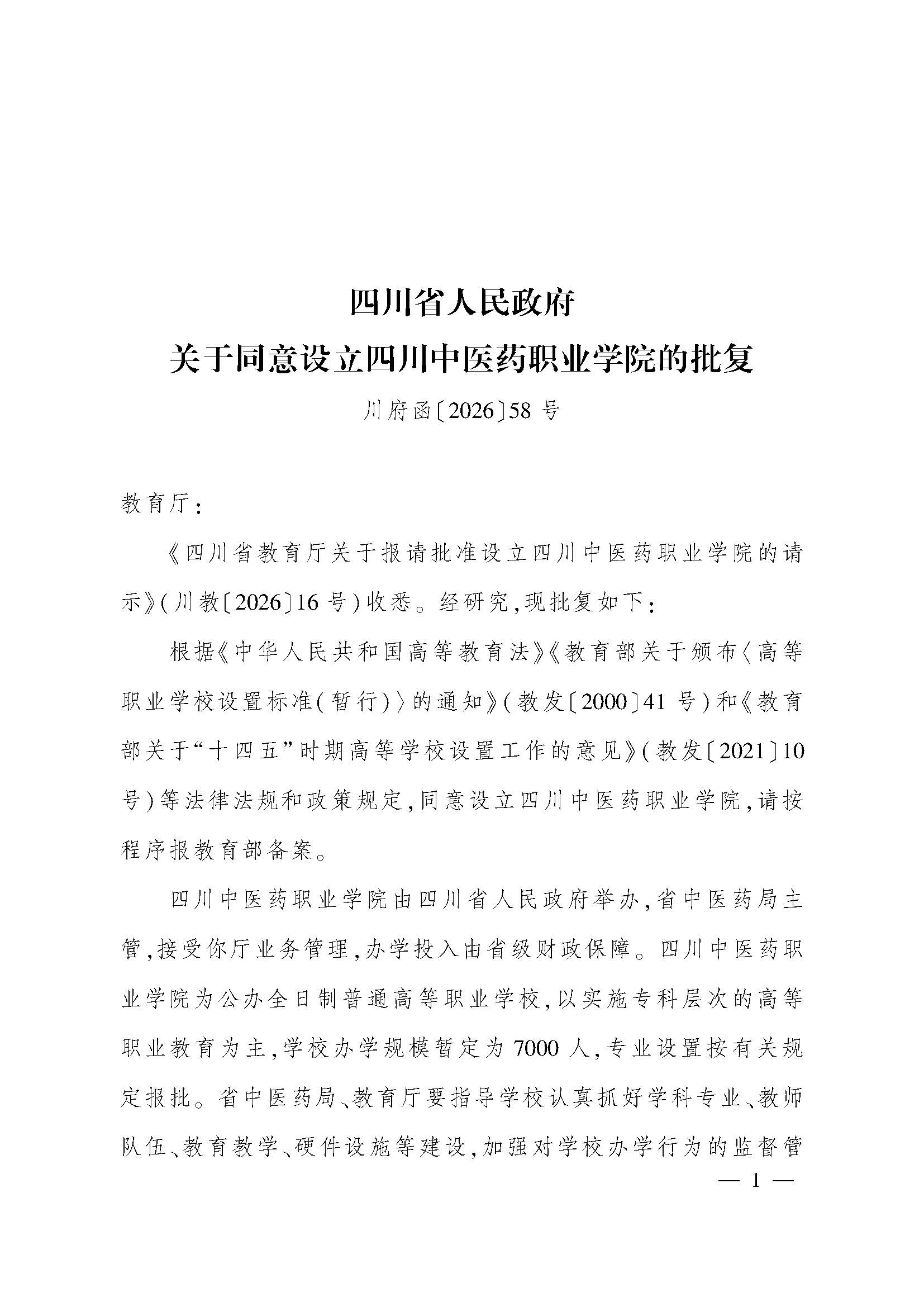 四川中医药职业学院由四川省人民政府举办,省中医药局主管,接受教育厅业务管理,办学投入由省级财政保障。