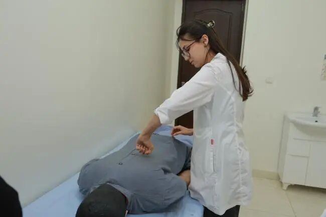 此次重点考核穴位识别与定位、推拿一指禅推法及㨰法、针刺手法、艾柱制作、拔罐实操等传统医学技能,考核细则与评价标准由新疆维吾尔自治区中医医院团队与乌方联合制定,由中乌双方教师联合执考。赛前考场完成标准化布置,将针刺训练模型、手法沙袋等传统实训教具,与中医技能智能考核模型、经穴学虚拟仿真训练系统等数字设备融合,打造数字化竞技平台。