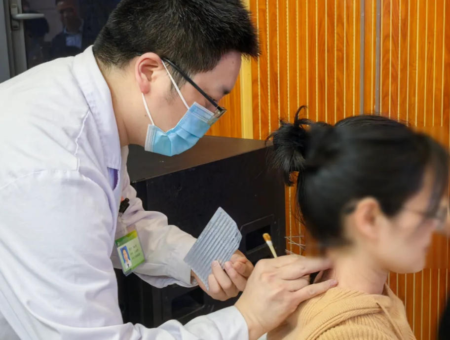 理论授课结束后,该院医务人员分设针灸、推拿、拔罐、艾灸、中药熏洗五大体验区,手把手开展实操教学。青年学员现场体验中医适宜技术,在互动实践中学习经络调理、祛湿散寒、舒筋通络等养生方法。