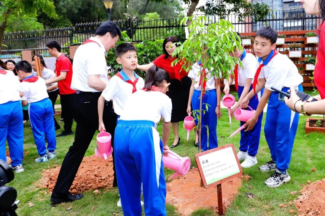 为让中医药文化从课堂走向田间地头,广东省中医院联合广州大学附属小学共同打造“三味蔬屋”劳动基地,助力学校搭建中医药劳动实践阵地。“三味蔬屋”内精心种植了各类药食同源果蔬草本植物,让学生近距离认识本草、感知膳食智慧、参与田间劳动,与“岐黄苗苗乐园”构成强大的中医药文化实践矩阵。揭牌仪式后,嘉宾与师生共同开展植树实践活动,栽种中医药特色植物,在春日劳动中播种文化传承希望,真切体会生活中的膳食养生智慧。