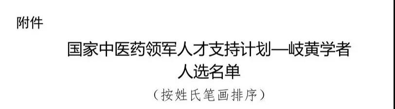 根据《国家中医药管理局关于印发〈中医药传承与创新“百千万”人才工程(岐黄工程)——国家中医药领军人才支持计划〉的通知》(国中医药人教发〔2018〕12号)要求,经逐级推荐和评审,并经国家中医药管理局局长会审定,现将国家中医药领军人才支持计划—岐黄学者人选名单予以公示。公示时间为2018年12月13日至12月19日。