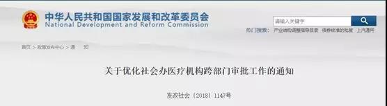 2019年1月2日,国家发改委联合民政部、自然资源部、生态环境部、住房城乡建设部、卫生健康委、应急部、市场监管总局、中医药局等9部门共同发布《关于优化社会办医医疗机构跨部门审批工作的通知》(以下简称《通知》)。