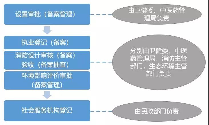 从流程框架我们可以看到,过去一些部门的硬性审核条件已经改成备案制,取消卫生健康、中医药主管部门的设置批准文件作为前置条件,在中间环节完全实现其他部门与医疗机构执业登记并联开展,既能简化流程,又能提高办事效率。