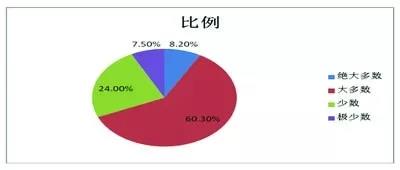 中医西化是一个比较热门的话题,一些中医虽然有中医的头衔,但是在看病的时候既没有中医的辨证思维方式,也缺少中医的诊治手段,相反对现代医学确很熟稔。受访者认为中国西化的中医从数量上来讲占绝大多数的比例为8.2%,占大多数的比例为60.3%,认为是少数的只有24.0%,认为是极少数的仅有7.5%。可见,中医的公众形象已经发生了很大变化,走传统路线的中医已经不是主流,中医的学科独立性堪忧。(见图13)