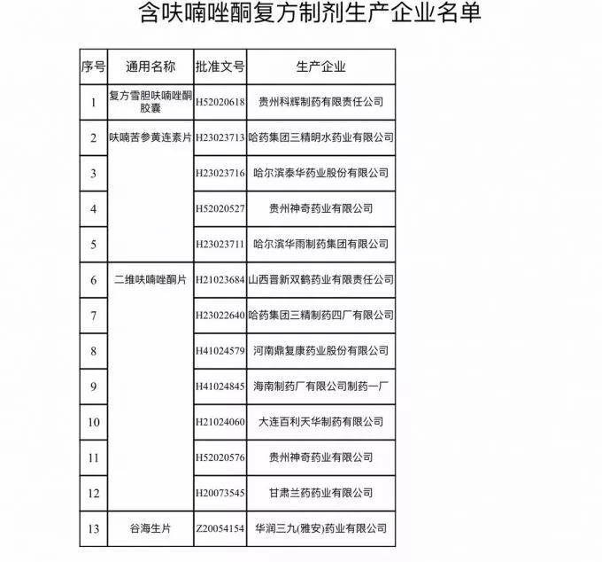 在公告中,国家药监局给出了四种禁用的含呋喃唑酮的复方制剂,分别为复方雪胆呋喃唑酮胶囊、呋喃苦参黄连素片、二维呋喃唑酮片、谷海生片,多用于治疗消化系统炎症。