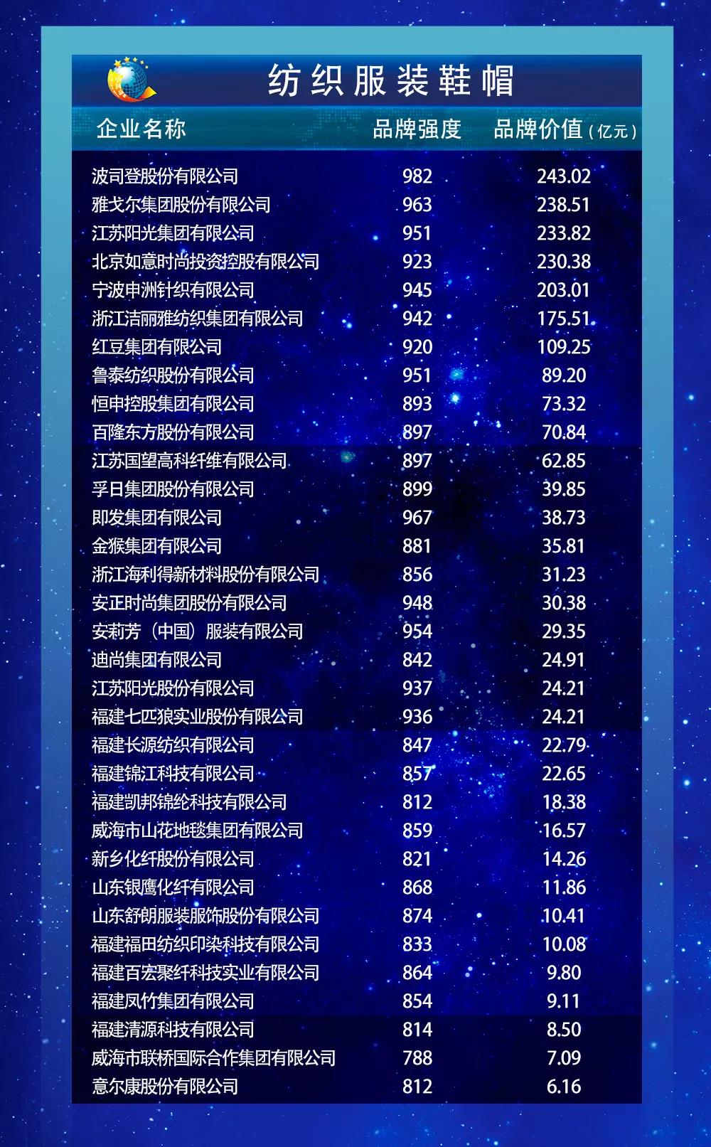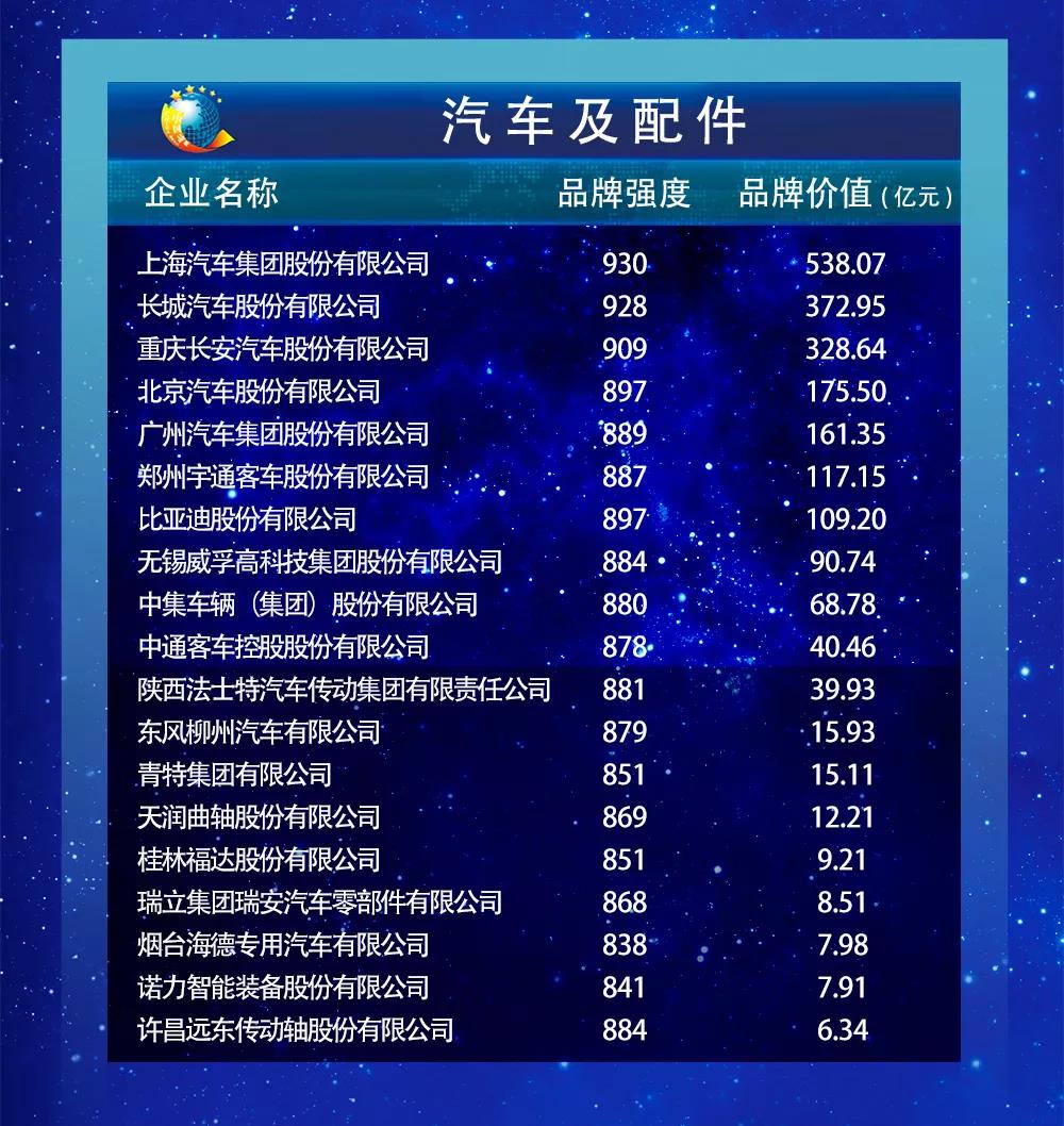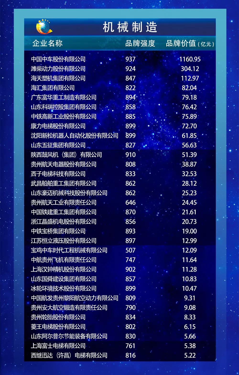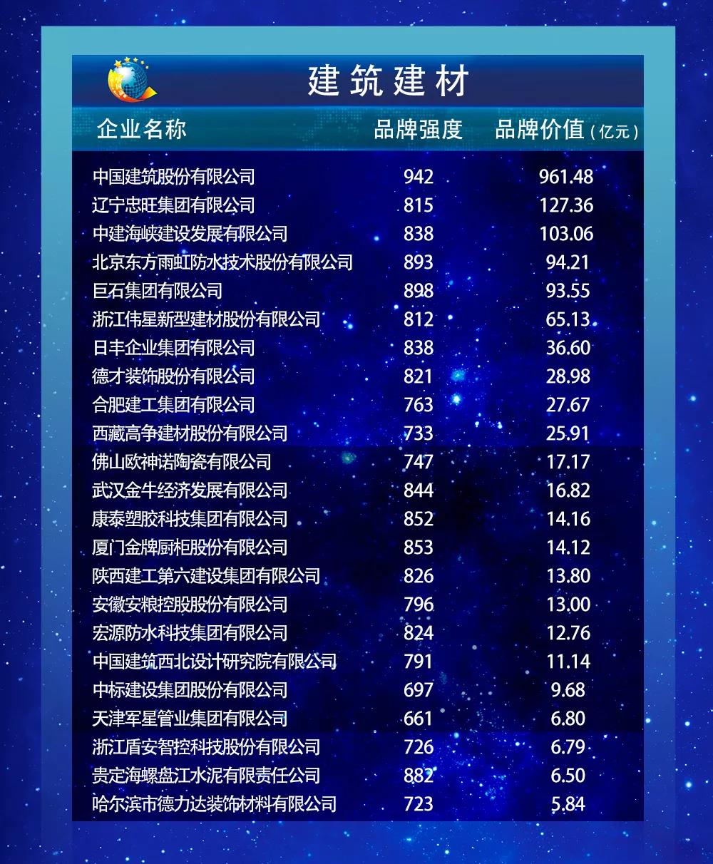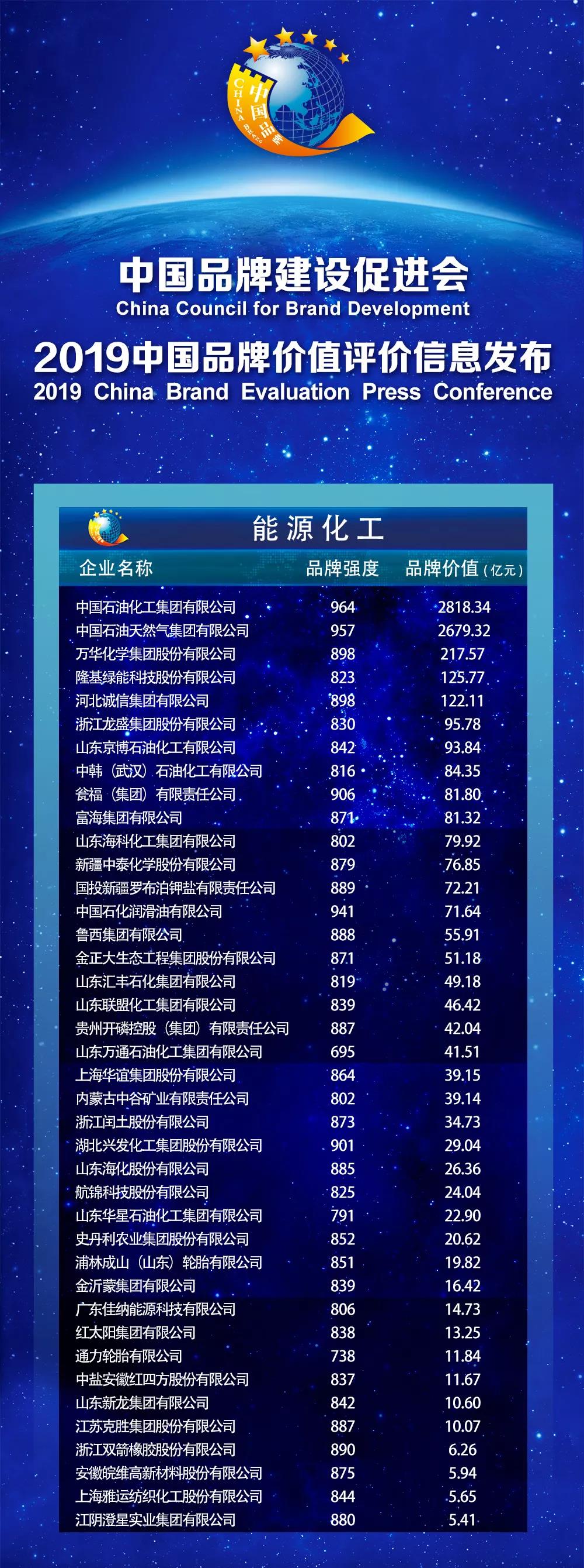 以下为2019中国品牌价值评价信息发布名单: