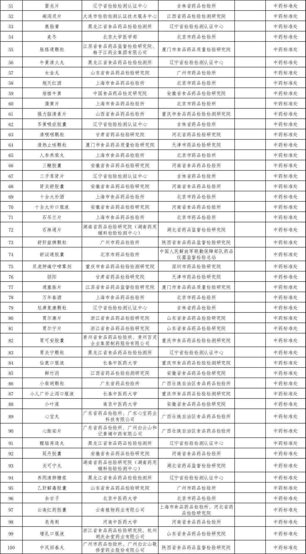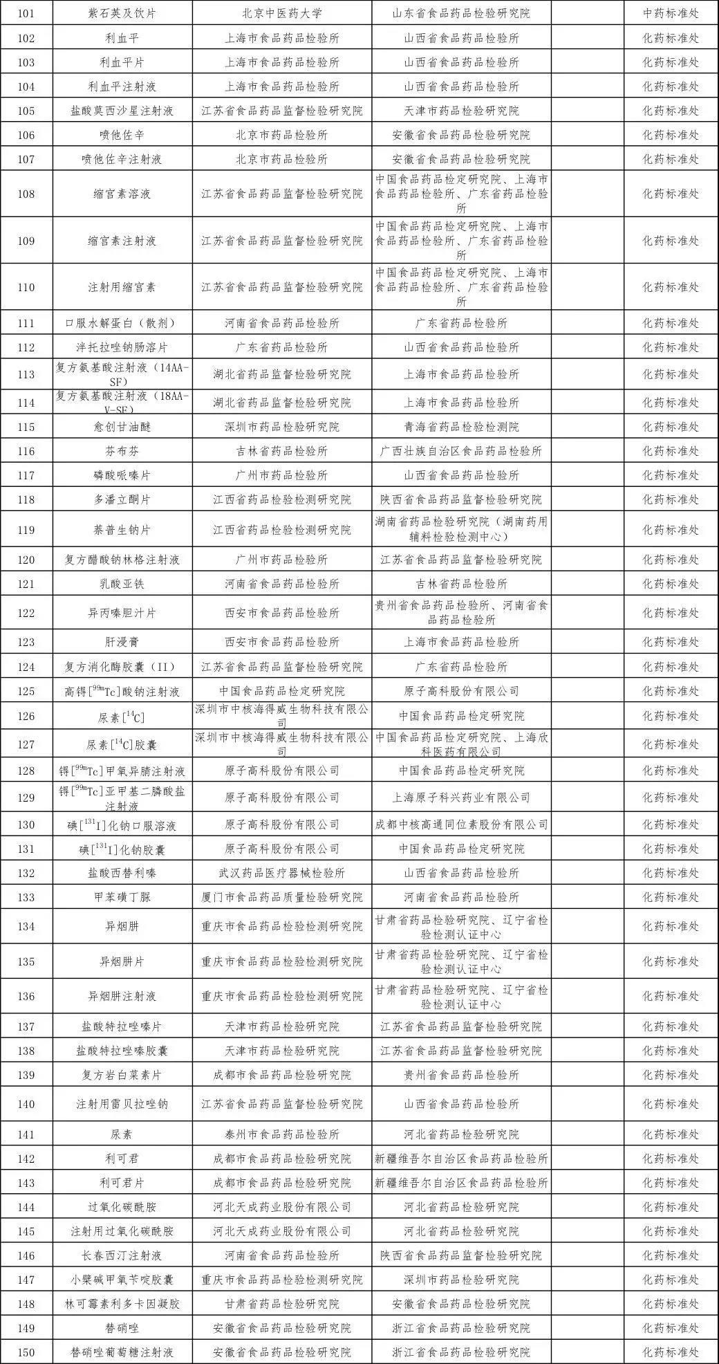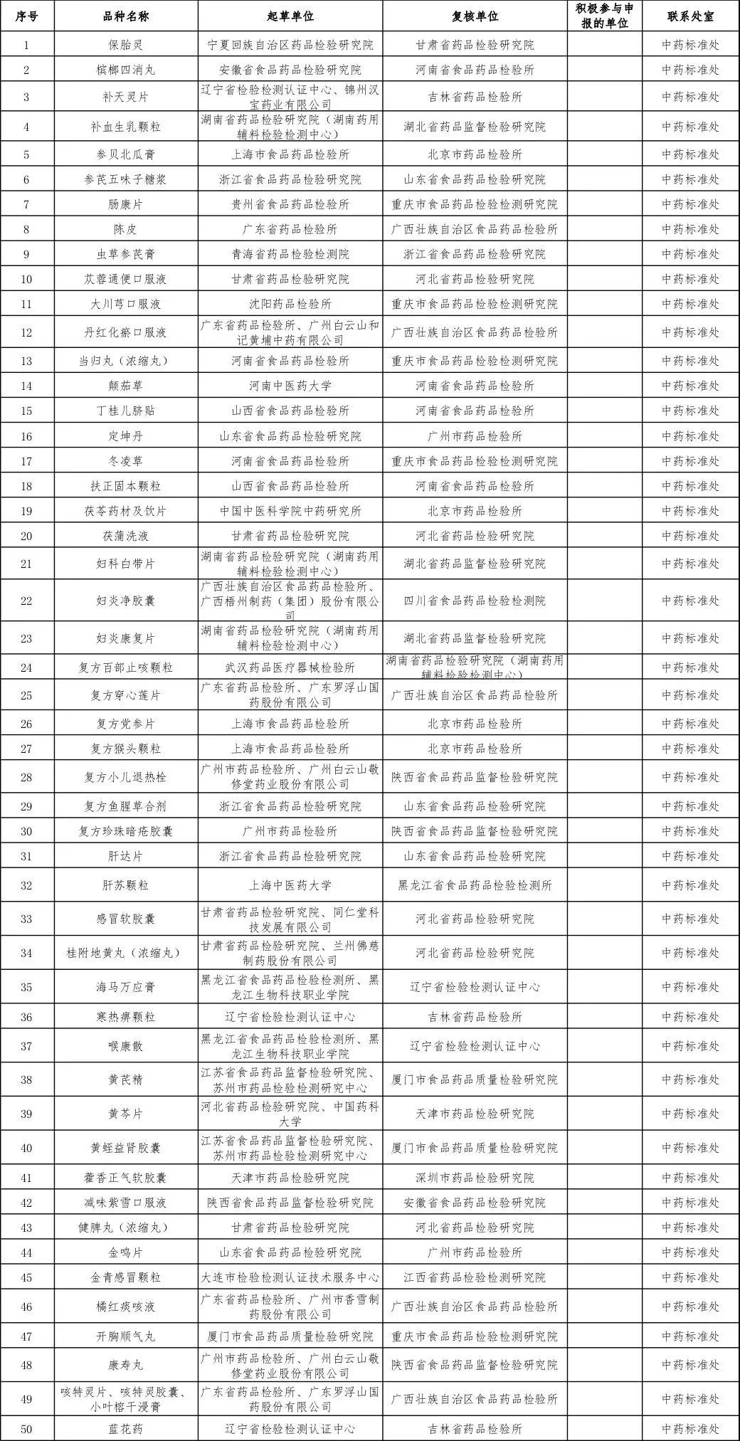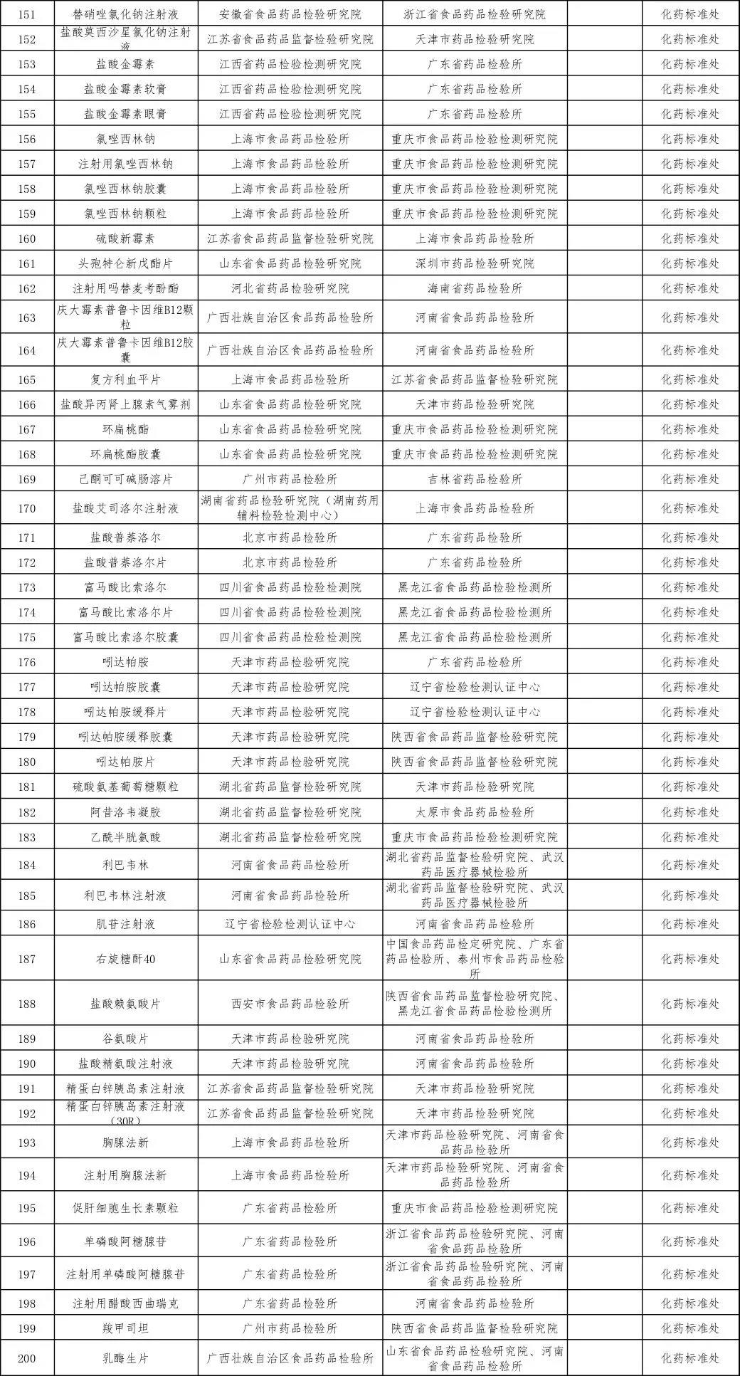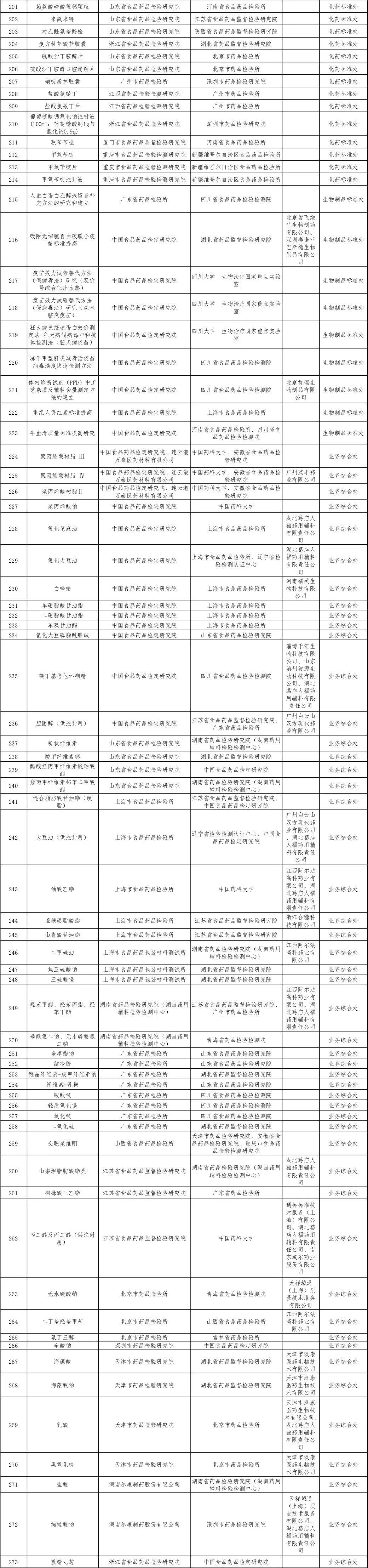 2019年国家药品标准提高项目课题目录(品种)